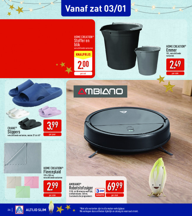 Deze tekst wordt automatisch gegenereerd, dus deze kan fouten bevatten.Vanaf zat 3/01 a HOME CREATION® mmer 101, verschillende varianten 249 au HET = Le ! N L kl Us sli ers verschillende varianten, maten 37 tot 45° y / é RR HOME CREATION® Fleeceplaid 120x150 cm, verschillende varianten AMBIANO® LO Robotstofzuiger 77 AL 11 W, ot 80 minuten werktijd, zm KA stofbakvolume: 260 ml, Jautomatische programma's (AAR Ei all aria VA 1JD SLIM arti n zijn inall UL TUT olang de voorraad PE
