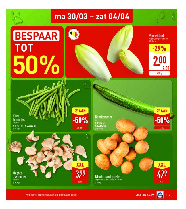 Deze tekst wordt automatisch gegenereerd, dus deze kan fouten bevatten.ma 30/03 - zat ah 4 UC BESPAAR Bt verpakt, oorsprong: België (u un Un] TOT 00 IF PT N 2 es € D. Fijne | ROULE boontjes -50% n -50% €3.73/2st HET) (NN OVEN dr 2st N CE É. à | 4 Rn Oester zwammen 399 LR EC 199 LT) 5009 ae) Skog Producten van hoge kwaliteit, altijdLaag geprijsd, alt dichtbi ALTIJD SLIM Al 13