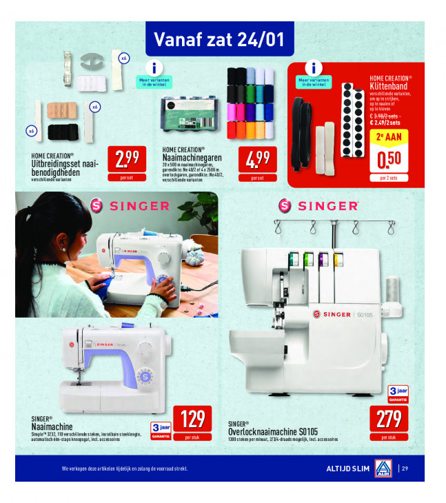 Deze tekst wordt automatisch gegenereerd, dus deze kan fouten bevatten.Vanaf zat 24/01 i HOME CREATION® Klittenband verschillende varianten, men om opte strijken, opte kleven optenaaienof À 6 Hs 2 HOME CREATION® HOME CREATION® Naaimachinegaren Uitbreidingsset naai- garendicte: Ne 40/2 of x 2500 m 20x500 m naaimachinegaren, benodigdheden overlockgaren, garendikte: Ne 40/2, 7 verschillende varianten verschillende varianten Ô SINGER OG SINGER nen 7 Dr 7. | cen } | a | F ı ‚| 5 | 4 4 = à 1 © sıncer = np] : cincer FES, | } | | 1 EX SINGER® SINGER® Naaimachine KE] Simple! 3232, 11D verschilende steken, instelbare steeklengte, Overlocknaaimachine 50105 automatisch één-staps knoopsgat, incl accessoires 1300 steken per minuut, 2/3/4-draads mogelijk, incl accessoires kopen d tikelen tijdelijk zolang de voorraa TIJD SLIM | 12»