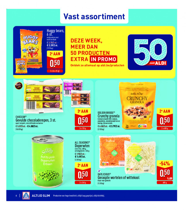Deze tekst wordt automatisch gegenereerd, dus deze kan fouten bevatten.Vast assortiment Hugoy EEG DE et Ent DES € 3.78/2 DEZE WEEK, € 2.39 MEER DAN Pi “4 50 PRODUCTEN \ EXTRA IK Ge sl ol Ontdek ze allemaal op aldi.be/producten Jar ALDI FAT} mus an an = — Golden Brie CRUNCHY | Es m I > GRANOLA Fa | | [ 7 3° AAN GOLDEN BRIDGE® Ï 2° AAN CHOCEUR® Crunchy granola krokante muesli iet rozijnen, L apartverpakt, verschilende varianten Gevulde chocoladerepen, 3 st. ‘amandelen, zonnebloempitten en honing, rijkaan vezels €537/3st-€4.08/3st. €658/2st: - €3.79/2 st. mog) (seo) Be 2, ALL SEASONS® RE a 5 extra fijn 6009, Doperwten uitekgewicht: 245 g Ni TR € T2. 7 (anno) (à fig: mer -54% 2° AAN Be ng mn“ HJ 0 DAYLICIOUS® Geraspte wortelen of wittekool 2x 257g) Klaar voor gebruik 6 JD SLIM Prod on DOTE ijd tb)