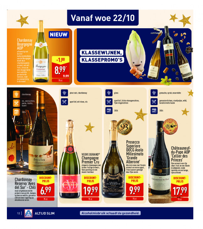 Deze tekst wordt automatisch gegenereerd, dus deze kan fouten bevatten.Vanaf woe 22/10 VE 5 il EN Re | ve 899 © 8 chardonnay 8 Pinot, chardonay 8 dlera B ++. EMS zeevruchten, aperitief, witvlees, vis & aperitief, lichte vleesgerechten ne visgerechten I” L À $ geronsterdvlees, stoofpojes, wild, karaktervolle kazen. 8 1 202 204 LS 5 ae / LE ev | Prosecco | ‘ole Superiore Châteauneuf- Ai DOCG Asolo VEUVE DURAND® Millesimato du-Pape AOP # ee” d Champagne ‘Grande ‘Cellier des MES 2 Sur Premier Cru Alberone' Princes’ elegante champagne met discrete neus met florale 8 fjnearoma'svanrijp zwart fruit en een mooie it El Intens fruitige aroma's, aroma'senverse appel, Kruidigheid, ronde fine parelingeneen moaie fraicheur frisse aanzet gevolgd tannines en een lange, door fijne zuren rijkeafdronk Ie am Chardonnay Du art Reserva ‘Aves AL del Sur’ - Chili À 1 mooi uitgebalanceerde aroma'svan perzik, banaan, 1) % 7 = 1 7) lychee en vanille, gerookte u U 99 (rl ‘eikenhouten vaten afdronk doorLagerng op az L 12 ALTIJD SLIM