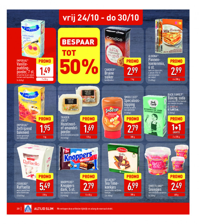 Deze tekst wordt automatisch gegenereerd, dus deze kan fouten bevatten.vrij 24/10 - do 30/10 ae rd Fi a = Candic re BESPAAR 4 Ke ÈS er NADE me ann ne TT LES Pannen- koekenmix, Vanille- N TC TG ETS Kant-en-klare mix, poeder, 7 st. Bruine 29 EEEN 299 PARENT instant vanilepudding suiker ETC] pannenkoeken TS) LE NTIC IM 2370) PT BACK FAMILY® SMOELTJES® Less ee” On a Baking soda TE) to Speculoos- van Koelges en cake x LE HAUTES 29072 st CT mbaltjes, Ze ACTES ETS LEUR Lun TI] TRADER | ES ie 3 | Hazelnoot- à > LATTES of amandel- = { Ô an 1 95 169 DEE 1+1 ELU) verschillende varianten LE GRATIS Ee tig m 54 mg PET LOT or — LR me ICE [LE ON 4 Raffaello op ses : + 4 mur 5 LUS TT _TeaTime- Raffaello El Knoppers koekjes 69 SWEETLAND® ks 249 CAE wafel gevuld met met donkere chocolade jark, 5 st. 27 Koekges FETES verschillende varianten Snoe ) [23 2 QT CRT mg 12279) IM RUE we; = LT) Fu ALTIJD SLIM We verkopen deze artikelen tijdelijk en zolang de voorraad strekt. Al