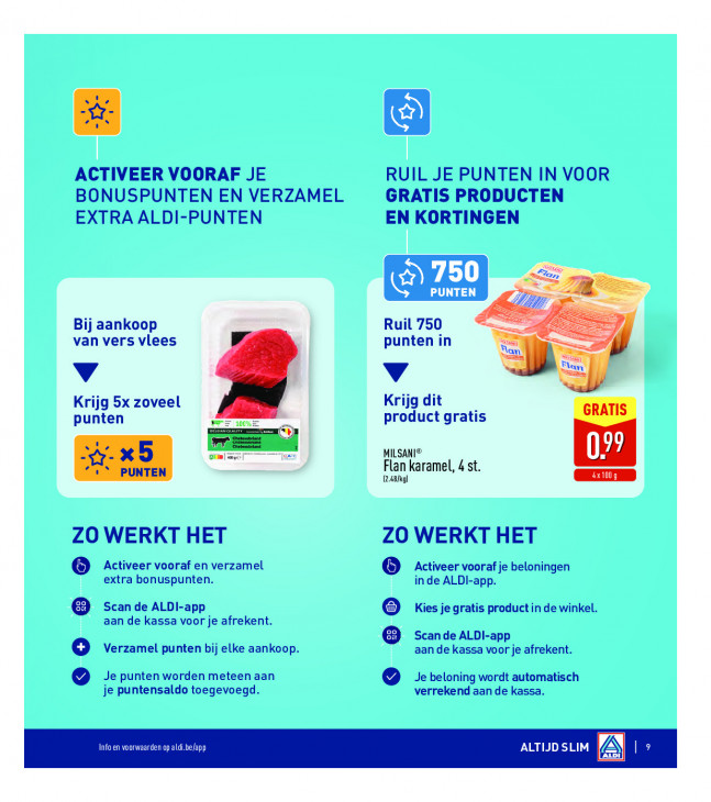 Deze tekst wordt automatisch gegenereerd, dus deze kan fouten bevatten.# ACTIVEER VOORAF JE RUIL JE PUNTEN IN VOOR BONUSPUNTEN EN VERZAMEL GRATIS PRODUCTEN EXTRA ALDI-PUNTEN EN KORTINGEN 750 QUE Wij Bij aankoop Ruil 750 and van vers vlees punten in = 4 vv Krijg 5x zoveel Krijg dit punten product gratis LTE 5 EE Fan orameL Ast. ZO WERKT HET ZO WERKT HET Activeer vooraf en verzamel © extra bonuspunten. © Activeer vooraf je beloningen in de ALDI-app. Scan de ALDI-ap Kies je gratis product in de winkel. aan de kassa voor je afrekent. Scan de ALDI-app Verzamel punten bij elke aankoop. aan de kassa voor je afrekent. 60 © Je punten worden meteen aan 6 60 Je beloning wordt automatisch je puntensaldo toegevoegd. verrekend aan de kassa. n op al. JD SLIM