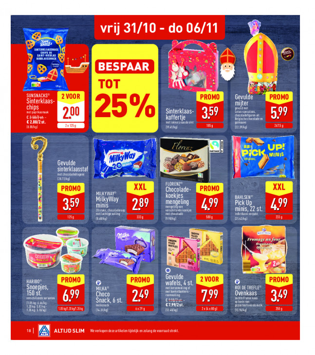 Deze tekst wordt automatisch gegenereerd, dus deze kan fouten bevatten.vrij 31/10 - do 06/11 Ar pi = À nes M 4 R 2/7 | BESPAAR LE 1e kn rr zb KING, TUE Sinterklaas- ter chips PACE I met paprikasmaak Sinterklaas- SCEE Ka 359 EERE Belgischechocolade en AT € 2.00/2st SRE (EU CENT CTP) AI 1859 [72,772] ET LE ) su, 4, Pe eb UP NL Ch (le = u N # [UC =| (IGE sinterklaasstaf à met chocoladedragees & ee CT) Dre Chocolade- MILKYWAY® koekjes. em [ES MilkyWay mengeling. al 359 4 EN minis 289 DO Pen 499 minis, he bl? EUT met chocoladé = EN 1259 rm 239 BIBIKg) 5009 [arm ET) U? BE U HARIBOPS à Eat u U gi RP | a” v 3 Eule DUI Gevulde wafels, 4 st. MILKA® Er KEE ROÏ DE TREFLE® FE 99 [alt Ovenkaas CE DENT: 1 ns EPE 799 op basis van Eee TT he Se melksnack €7.99/2st. PT pen CETTE E79) 6x299 1248) ech) NEK AT LE ALTIJD SLIM We verkopen deze artikelen tijdelijk en zolang de voorraad strekt.