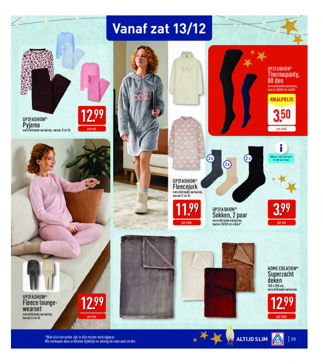 Deze tekst wordt automatisch gegenereerd, dus deze kan fouten bevatten.De, eh Vanaf zat 13/12 I | Se we > pi 5 Ss in Ahl | UP2FASHION® | CI Pyjama verschillende varianten, maten StotXL jr u . & an Len UP2FASHION® Fleecejurk J pr verschillende varianten, maten S tot 3 UP2FASHION® 1199 Sokken, 2 paar In verschillende varianten, Eke maten 35/38 tot 43/46 » wu En HOME CREATION® Superzacht 7 LA en | je 150x200 cm, verschillende varianten UP2FASHION® i Fleece lounge- 2 nl wearset | CI EE [AL matenStot XL verschillende varianten, mn per U le varianten zijn in alle m erkrügbaar. We kopen deze artikelen tijde zolang de voorraad strekt. ALTIJD SLIM 25 Ek
